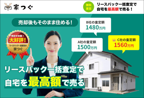 自宅を最高額で売りたい方に一番おすすめなのが「家つぐ」というリースバック一括査定サイトです。
